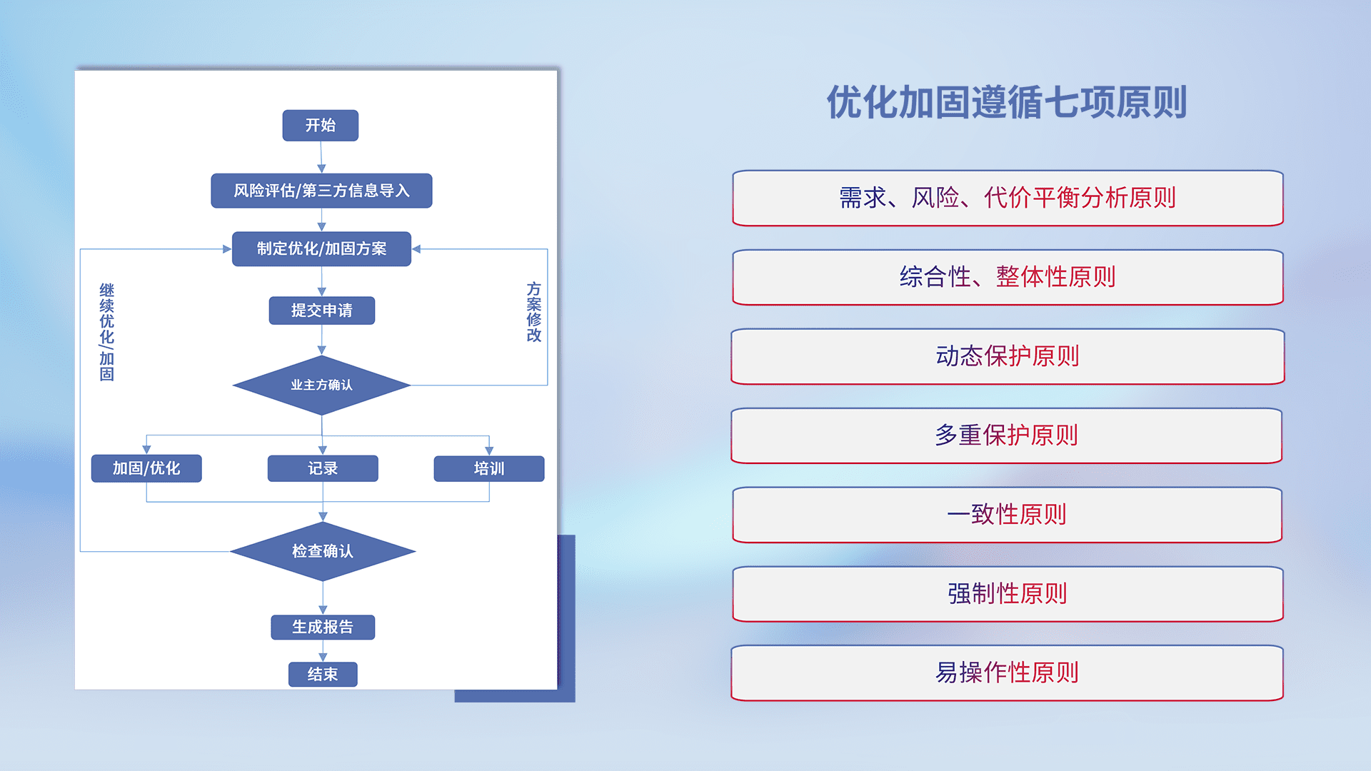 最大程度利用现有资产,,,,对评估发现的问题进行封堵与整改,,防止漏洞被利用,,提升整体网络安全性,,,,为客户带来高标准的优化加固服务。。